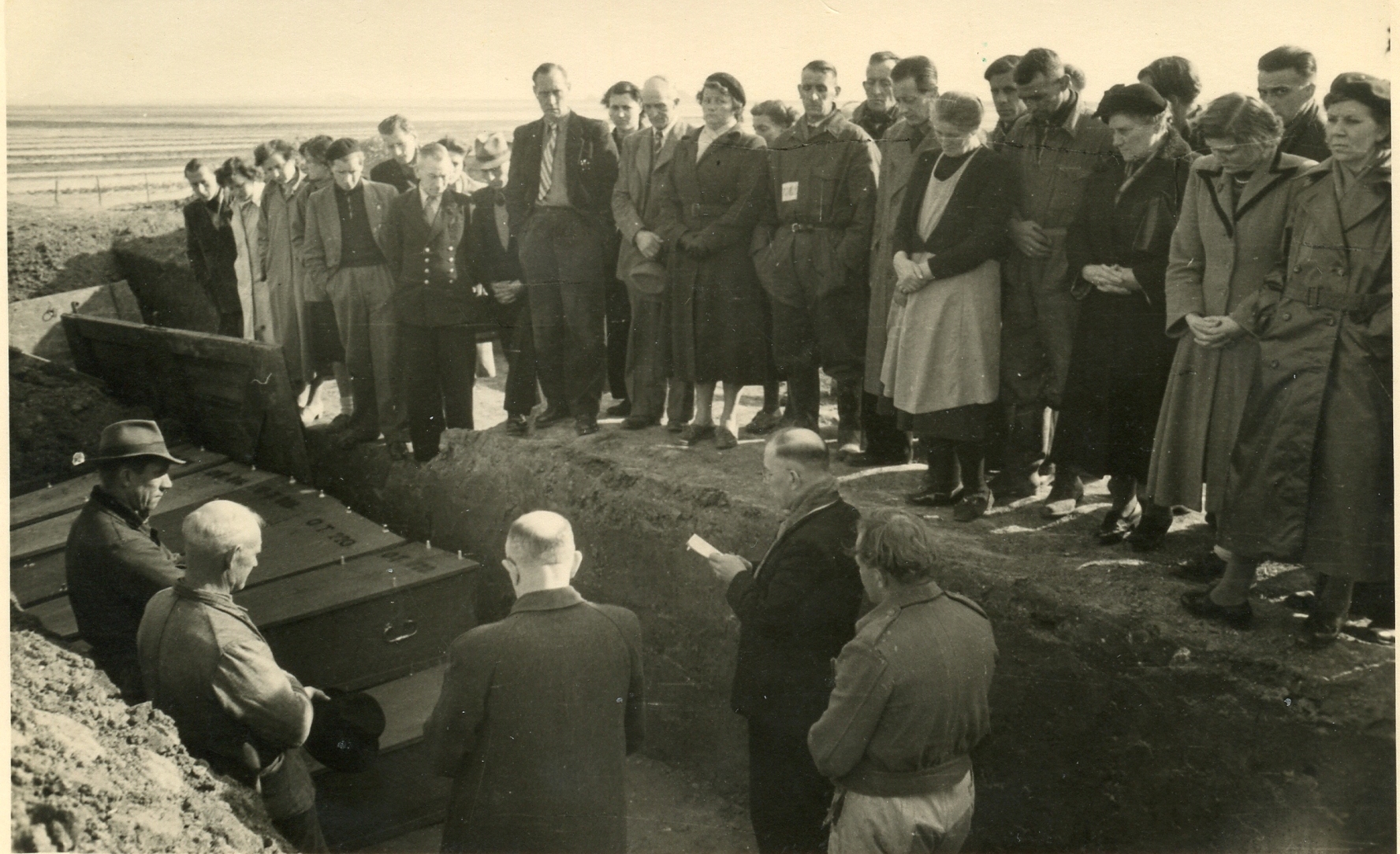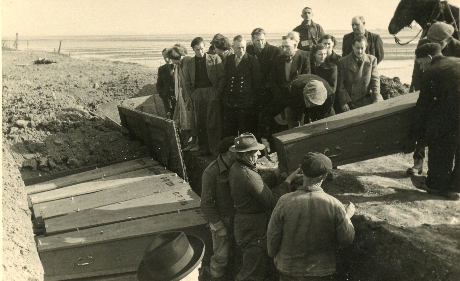 Via een modderig karrenspoor werden de slachtoffers naar hun laatste rustplaats gebracht.