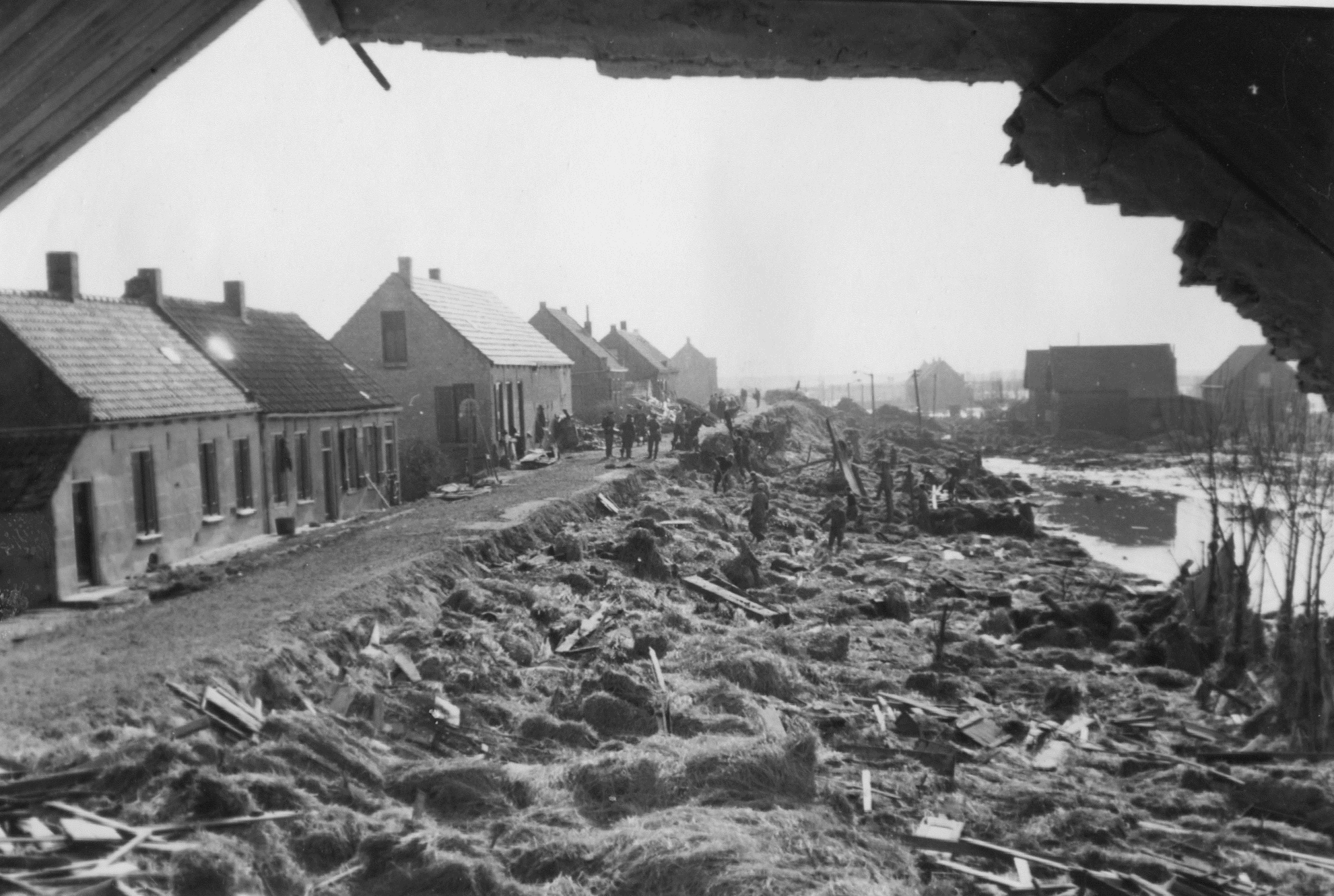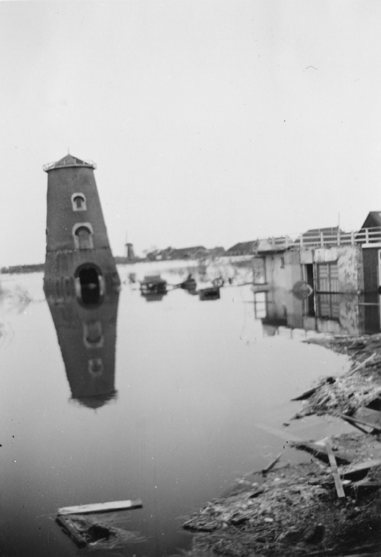 Bovenstaande woning op Zuiddijk 50 was van familie de Vos. Meerdere mensen waren hier tijdens hun vlucht aangekomen en dachten een veilige plek te hebben gevonden. Maar helaas... De molenpolder stroomde ook vol via de westkant van de polder. Vanuit de polder Suyderlandt stroomde het water over de Helledijk. Ook mensen van buiten het dorp in de Molenpolder vluchten naar het dorp onder ander over de Zuiddijk. Toen de twee waterstromen samenkwamen ontstond er on soort vloedgolf en werd het huis van de Vos voor een groot deel verwoest. Hier kwamen 6 mensen om het leven.